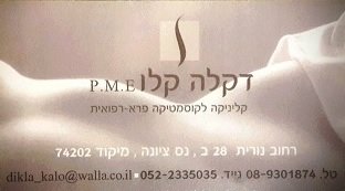שלום שמי דקלה קלו ואני קוסמטיקאית פרא רפואית בעלת ותק של 27 שנים בתחום היופי ובריאות העור, תמיד היתה לי את האהבה ומשיכה אינטואיטבית לבריאות העור וטיפוחו, במהלך השנים עברתי השתלמויות בארץ ובחול ואני תמיד עם היד על הדופק בכל חידוש בתחום הקוסמטיקה על מנת שאוכל להעניק ללקוחותיי את המיטב הטיפולים הקיימים בתחום.1